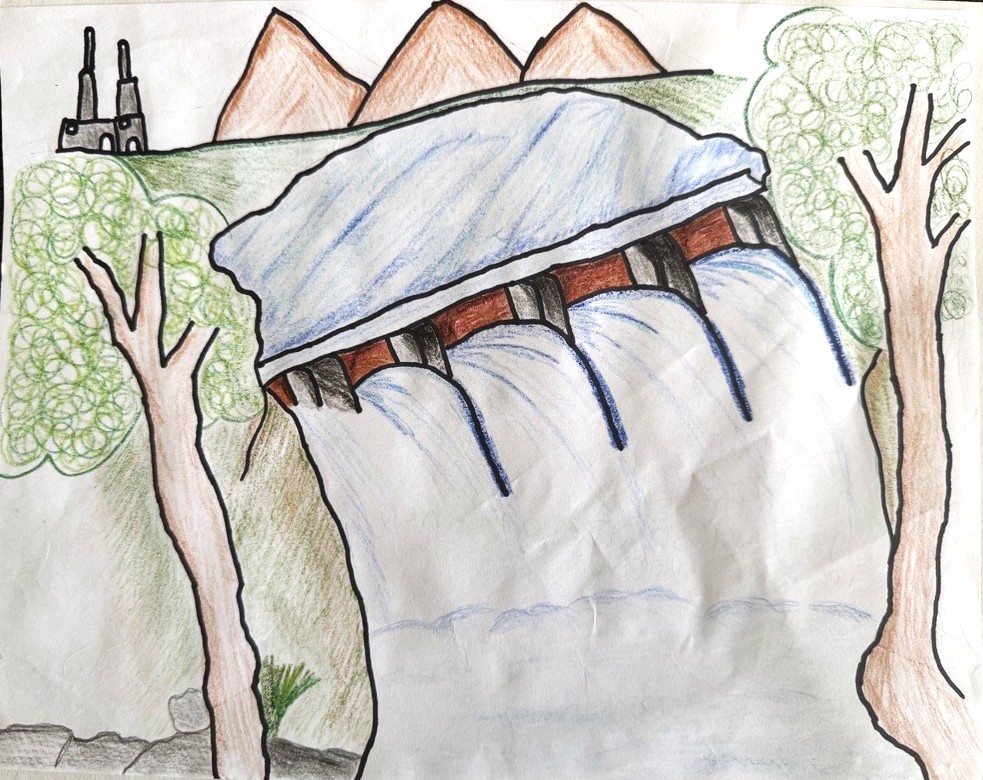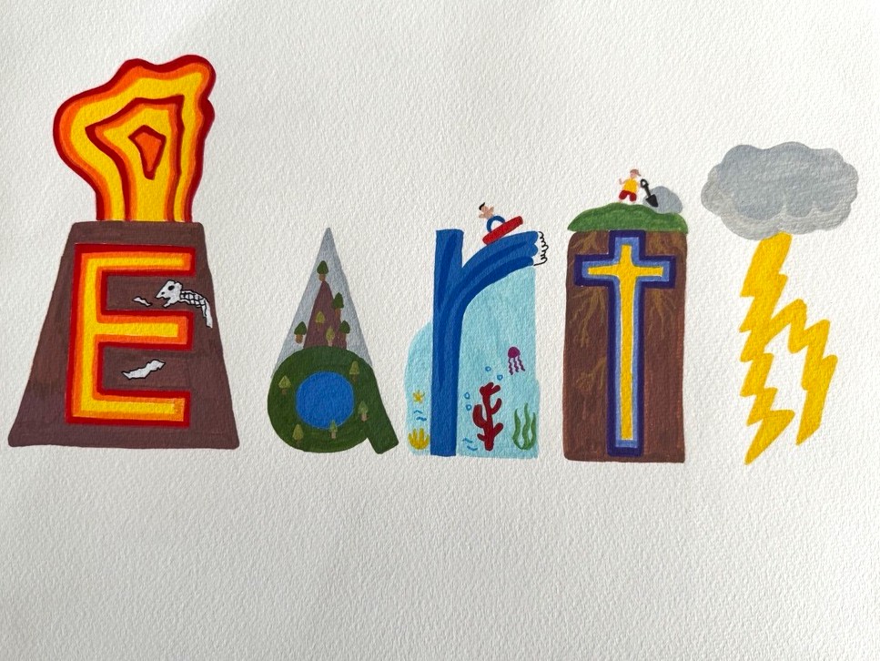 Charles Yang of Newbury Park, California, won first place in the visual arts contest for their imaginative and distinctive use of scenes and symbols to thoughtfully weave together diverse natural systems and forms of energy—from geological forces and flowing water to ecosystems, weather, and lightning. The artwork’s careful use of color, symbolism, and detail demonstrates a strong understanding of the interconnectedness of Earth’s processes, resulting in a visually compelling and meaningful piece.