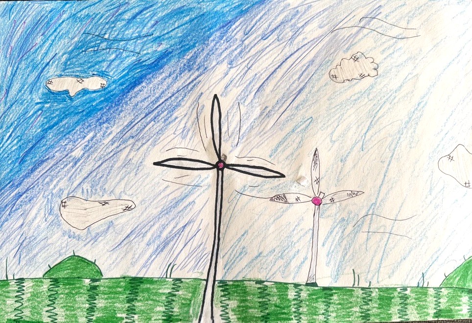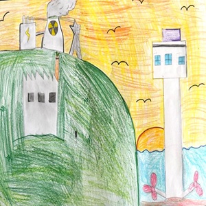 Students in grades K-5 made two-dimensional artworks illustrating the theme “A World of Energy Possibilities.”